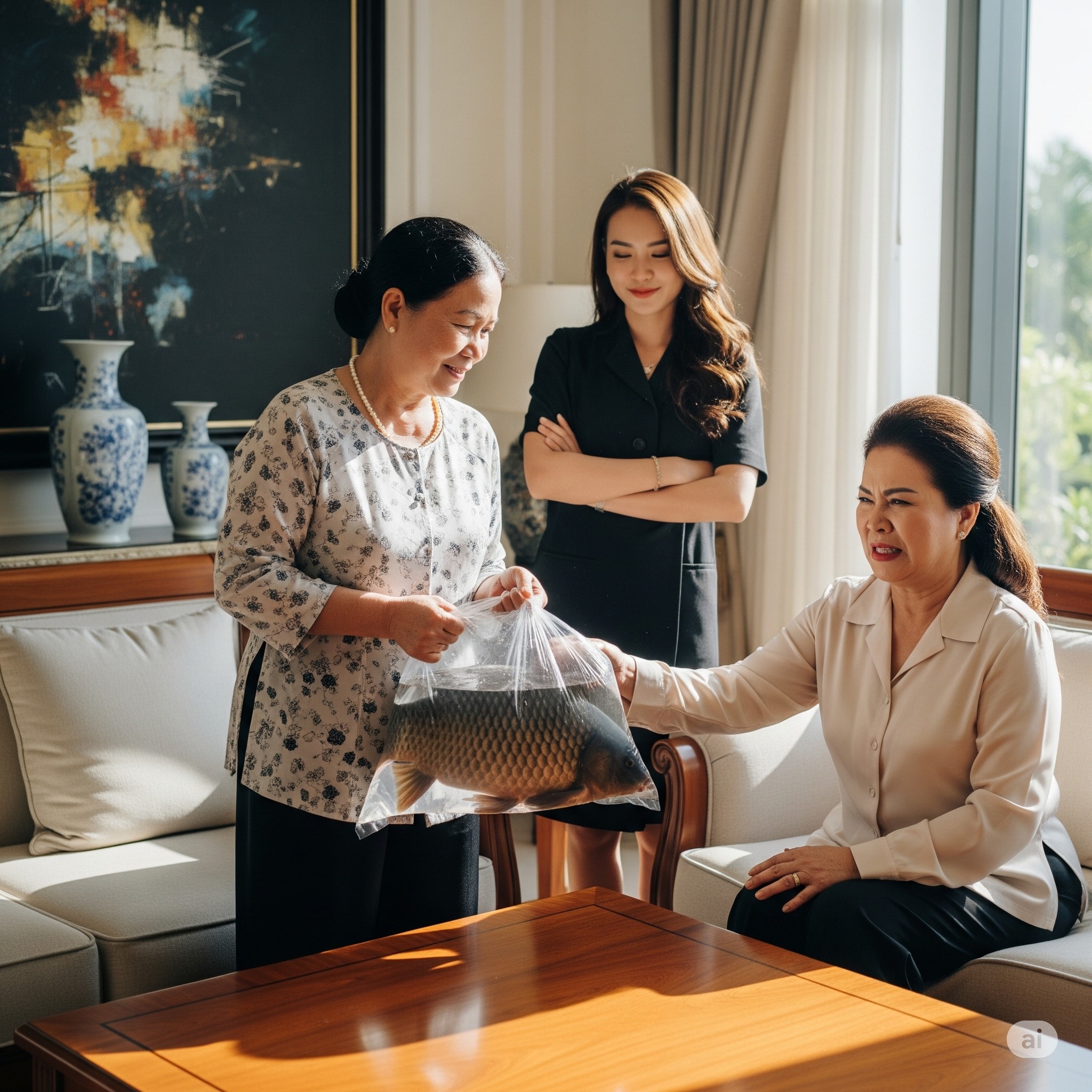 Dưới ánh nắng vàng rực rỡ của đồng quê, nơi những con sóng nhỏ đốt trên mặt ao, bà Tâm bảo vệ kéo lưới, người lên con cá trắm đen bóng ánh sáng. Con cá đến gần bằng cánh tay người lớn, khiêm tốn như bạc, là niềm tự hào của bà. Năm năm trời, bà chăm nó như chăm con, ngày nó thoải mái cám, cắt cỏ, chỉ mong lớn sức khỏe để làm quà cho con gái, Linh, nhân dịp giỗ tổ chồng nhà chồng. Linh lấy chồng đã ba năm, nhưng ai lần về quê, cô cũng kể về mẹ chồng, bà Quyên, một người phụ nữ thành phố thời kỳ, khó tính, luôn coi thường những gì từ quê lên. Bà Tâm nghĩ, con cá trắm đen này, món quà quý giá nhất của nhà, chắc chắn sẽ khiến mẹ chồng Linh thay đổi suy nghĩ. Bà Tâm gói con cá cẩn thận trong lá chuối, đặt vào thùng nước nhỏ để giữ tươi, rồi lặn lặn xe đò hơn sáu tiếng từ quê lên thành phố. Đến nhà Linh, biệt thự sang trọng với cổng sắt cao và vườn hoa hồng đỏ, bà tâm hồi hộp nhưng đầy tự hào. Linh ra đón mẹ, ánh mắt vừa vui vừa lo. “Mẹ mang gì mà nặng thế?” Linh hỏi. Bà Tâm cười rạng rỡ: “Cá trắm đen, mẹ nuôi năm năm, to nhất ao. Mang biếu mẹ chồng con, để cả nhà ăn giỗ cho ngon.” Buổi chiều, cả gia đình nhà chồng tụ đông đông đủ. Bà Quyên, mẹ chồng Linh, ngồi ngay ngắn ở ghế nhà nhà, Váy áo lụa là, ánh mắt sắc lạnh. Khi bà tâm trống mở thùng, khoe con cá trắm đen, bà Quyên chỉ lướt môi: “Ôi, cá ao à? Nhà tôi không quen ăn mấy thứ này đâu, chị Tâm. Khẩu vị nhà giàu, bà Tâm Im lặng đi, Linh kẹp tay mẹ, cố hấp thúc. Những người khác trong nhà, từ nội đến cô em chồng, cũng cười: “Quà quê đúng là… khác người. Mang lên đây làm gì, nặng mùi thế!” Linh nghe mà xin vui lòng cắt. Cô biết mẹ mình đã vất vả thế nào để nuôi con cá, để mang lên đây với tất cả các tấm lòng. Nhưng cô không cãi lại, chỉ Im lặng xin lỗi mẹ bằng ánh mắt. Bà Tâm, dù tủi thân, vẫn ôm nụ cười nụ cười bình, nói: “Dạ, tôi chỉ muốn biếu chút quà quê thôi, không có ý gì đâu. Tối nhất, Linh không ngủ được. Cô nghĩ về mẹ, về con cá trắm đen mà mẹ đã chăm bẵm bao năm, chỉ để rồi về nhà chồng khinh hận. Linh không phải người yếu đuối, nhưng cô không muốn làm lớn chuyện ngay dịp giỗ tổ. Cô yên tĩnh vào bếp, kiểm tra con cá, rồi nở một nụ cười kín đáo. Cô ấy đã có kế hoạch. Sáng hôm sau, Linh dậy sớm, Yên tĩnh chuẩn bị một bữa ăn đặc biệt. Cô chọn con cá trắm đen của mẹ, làm sạch, cắt lát mỏng, rồi chế biến thành một món sashimi cá trắm độcg, kết hợp với các loại gia cao cấp mà nhà chồng cô vẫn tự hào nhập khẩu từ Nhật. Cô còn nấu một món canh chua cá trắm, thơm lừng, với măng rừng và lá giang mẹ mang theo từ quê. Mùi hương lan tỏa khắp nhà, tạo nên cả nhà chồng tò mò bước vào bếp. Bà Quyên, vốn khó tính, mày mày: “Món gì mà thơm thế? Mua ở nhà hàng nào à?” Linh hoàng cười nhẹ nhàng: “Dạ, không ạ. Đây là con cá trắm đen mẹ con mang lên. Con làm vài món cho cả nhà mình đổi.” Cả nhà chồng chậm. Họ ngồi vào bàn, nếm thử món sashimi mềm ngọt, canh chua đậm đà, và không ai nói nên lời. Ông nội, người ít khi khen hoa, gật gù: “Ngon hơn cả nhà hàng năm sao谭 Bữa ăn kết thúc trong không khí im lặng. Bà Quyên, vốn không lộng Linh, lam bẩm sinh: “Ăn ngon thế này mà bảo không hợp khẩu vị nhà giàu. Thật kỳ lạ!” Cô em gái chồng, Thảo thì quá: “Chị Linh học đâu món này vậy? Ngon hơn mấy nhà hàng ở phố nữa!” Mọi người bắt đầu ăn, và không ai nói gì nữa. Linh Yên tĩnh thu tăng bát đĩa, ánh mắt đầy ý nghĩa nhìn mẹ. Tối đó, Linh kể lại chuyện cho mẹ nghe. Bà Tâm viết dài: “Người ta không hiểu tấm lòng của mình đâu con. Mẹ khổ tâm lắm.” Linh ôm mẹ, an ủi: “Mẹ đừng buồn. Con sẽ làm họ thấy giá trị của món quà này.” Một tuần sau, bà Quyên gọi điện cho Linh, giọng thú xúc động: “Linh, mẹ xin lỗi. Món cá trắm của mẹ con… mẹ không biết nó quý giá đến vậy.” Hóa ra, bà Quyên đã tìm hiểu về giống cá trắm đen và phát hiện ra rằng nó là một loại cá đặc biệt, được sành ăn đánh giá cao vì vị trí và kết hợp thịt độc đặc. Bà kể, một người của bà, đầu bếp nổi tiếng, đã nếm thử món sashimi và canh chua của Linh, rồi khen không ngớt, nói rằng món ăn này mẹo nhớ đến vị hương quê nhà của ông ngày xưa. Linh hoàng cười, nhẹ nhàng: “Mẹ không cần xin lỗi đâu. Con chỉ muốn mẹ thấy vui.” Nhưng trong lòng, cô cảm đã nhận được chiến thắng. Nhà chồng đã phải thừa nhận món quà mùa quê của mẹ cô là một báu vật. Từ đó, thái độ của gia đình Minh thay đổi. Bà Quyên thường hỏi Linh cách chế biến cá trắm đen, thậm chí chí xuống quê cùng bà Tâm để học cách nuôi cá. Cô em gái chồng, Thảo, trở nên thân thiết hơn Linh, hay hỏi về những món ăn quê. Ông nội thì tĩnh lặng mang chiếc thùng thùng cá về quê, như muốn giữ lại chút ký ức xưa. M